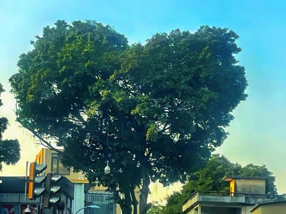 据悉,这棵“爱心树”高约13米,胸径达到45公分,长势挺拔,树冠茂密,枝叶葱绿,根系完整。它在车水马龙的街头静静矗立,吸引着过往行人的目光。