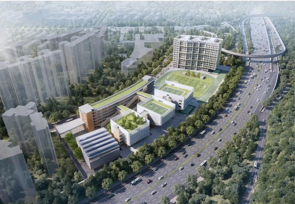 {香港中文大学(深圳)附属明德高级中学整体鸟瞰图(概念图)}