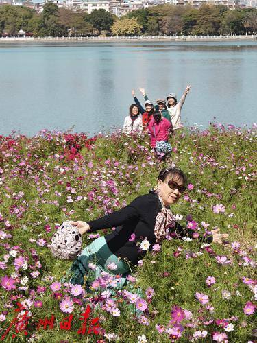 人们在花海中漫步,或驻足拍照,或与家人朋友共享这美好的时光。孩子们在花丛中追逐嬉戏,笑声回荡在空气中,增添了几分生机与活力。情侣们手牵手,漫步在花间小道,享受着浪漫的氛围。 木栈道上,人们或坐或立,有的在欣赏美景,有的在聊天,有的在拍照留念。每个人都沉浸在这片花海带来的愉悦之中,脸上洋溢着幸福的笑容。海珠湖公园的花海,不仅是春天的象征,更是人们心中的美好记忆。