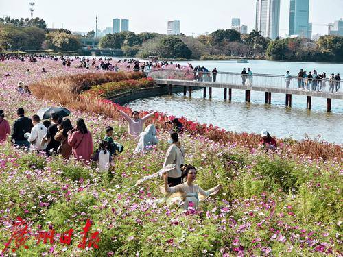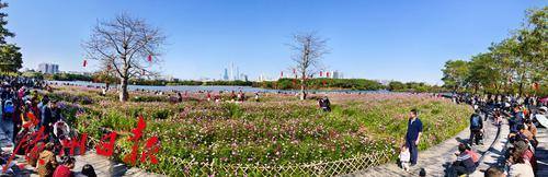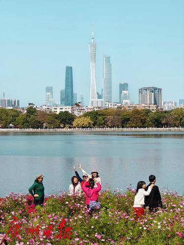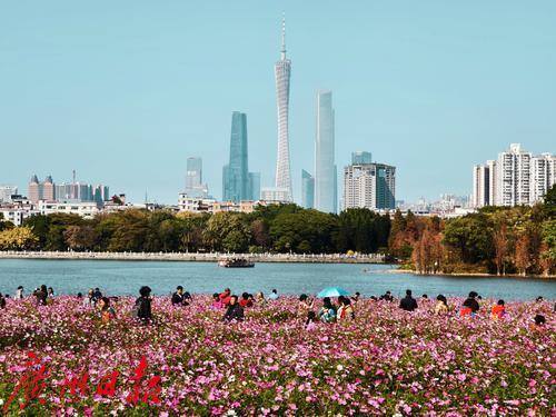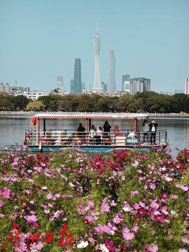 春日的海珠湖公园,是一幅生动的画卷。阳光洒在湖面上,波光粼粼,与远处的城市天际线交相辉映。湖边的花海,如同大自然的调色板,五彩斑斓的花朵竞相开放,吸引了无数市民和游客前来观赏。