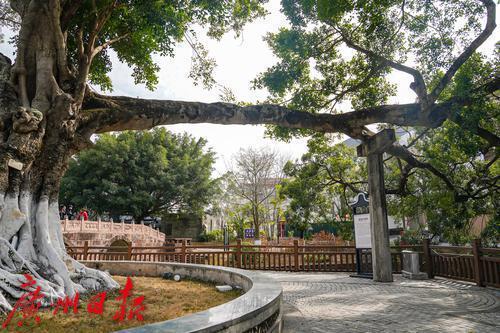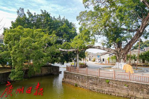黄埔区莲塘村是一座有着700多年历史的传统村落,始建于南宋。它位于广州市黄埔区九龙镇西部,呈 “山—村—水—田”的格局。村落传统街巷为 “梳式” 布局,保存着宋代的2条街和11条巷道。村中古建筑鳞次栉比,其中,时四陈公祠、鸿佑家塾、秀昌书室等极具代表性。古桥清濯桥横跨莲塘,桥边一棵古榕树枝繁叶茂,巍为壮观。这里自然环境优美,生态资源突出,民俗文化丰富。如今,莲塘村还将旧屋打造成了咖啡馆、茶室、餐厅等,利用潮流业态活化了老建筑,也促进了村集体经济发展,在传统与现代间架起了桥梁,吸引不少市民游客前来游览玩耍。