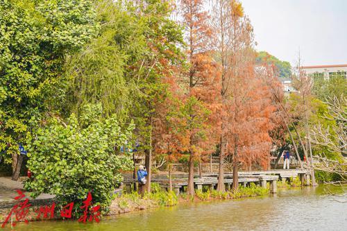 莲塘村一隅,水杉正黄,吸引游人拍照。