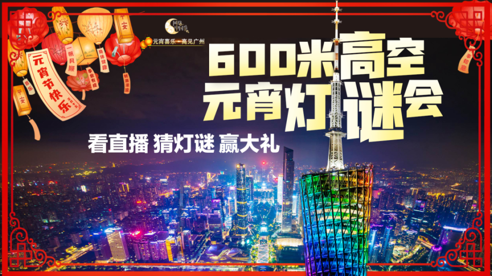 今天是元宵节,抬头赏月的同时,若也能猜猜灯谜,该多好呀?广州日报将联合广州塔携旗下文旅线上线下举办“600米高空元宵灯谜会”。广州塔将以塔身为“灯”,滚动播放灯谜谜面,邀请广大市民游客朋友一起猜谜,共度元宵。