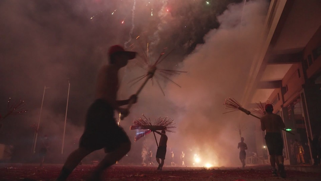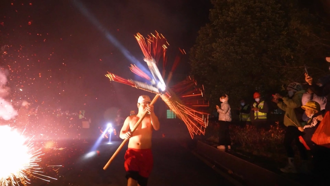 祠堂照壁上,几行斑驳的客家祖训见证着代际更迭。夜空中却传来年轻队员曾文镇的誓言:“坚韧不拔是老祖宗传给我们的力量。我们鼓足勇气光着膀子舞起火龙,不惧怕在鞭炮声中的一点点伤害,就是这种最宝贵的血脉的体现。”