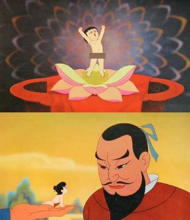 1961年上海美术电影制片厂的动画片《大闹天宫》出现了三头六臂的哪吒,胖嘟嘟、圆滚滚的福气模样贴近中国民间的年画娃娃。