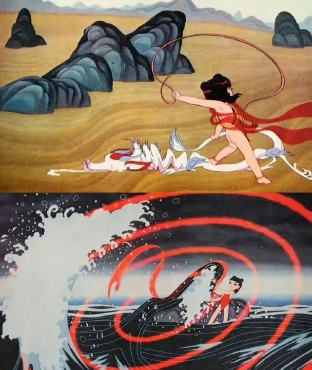 《哪吒闹海》刻画了个性鲜明且具有反叛精神的小英雄哪吒。多少年后,哪咤长袖飘飘、白衣若雪,在暗如黑夜的暴风雨中横剑的一幕仍历历在目,不能忘怀。
