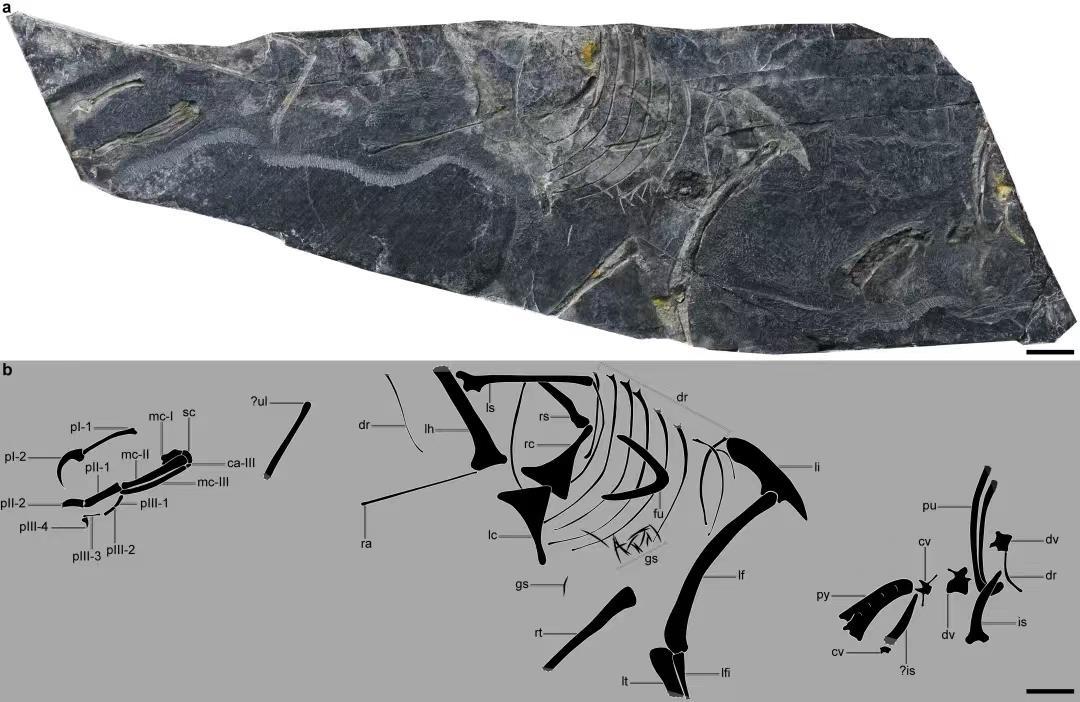 该化石于2023年11月在政和大溪盆地发现,经过长达一年的室内修复和研究分析,研究团队确定了该化石属于鸟类。虽然化石不完整,但是它保存了很多重要信息。例如具有分离的肩胛骨和乌喙骨,腰带骨骼显现出很多进步的特征。其中最重要、最特殊的地方就是具有愈合的尾综骨,这是构成现代鸟类体型的基石。