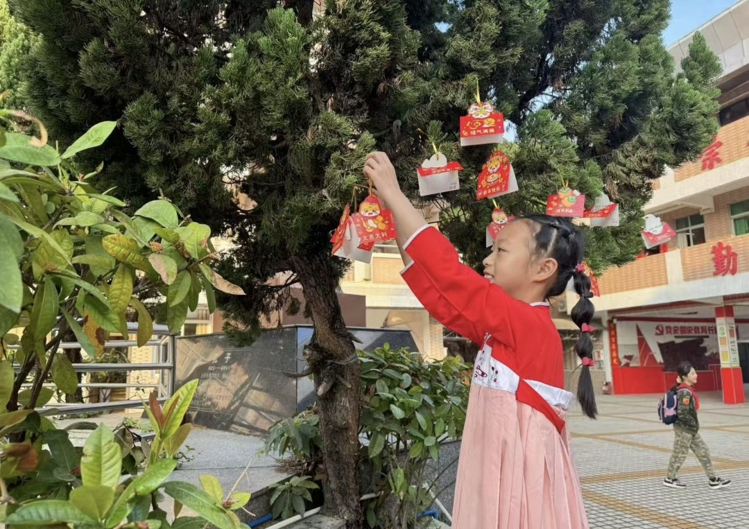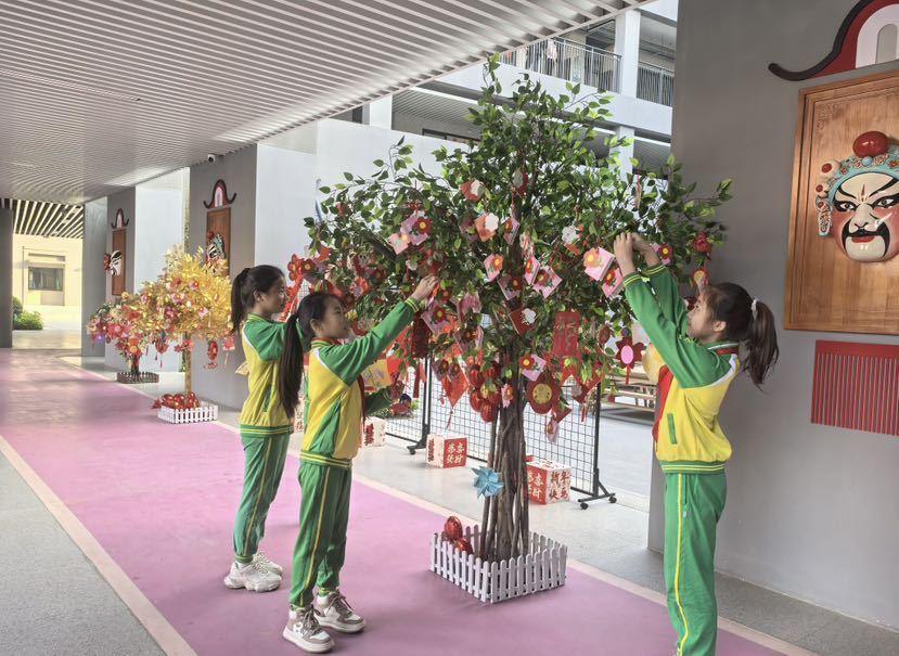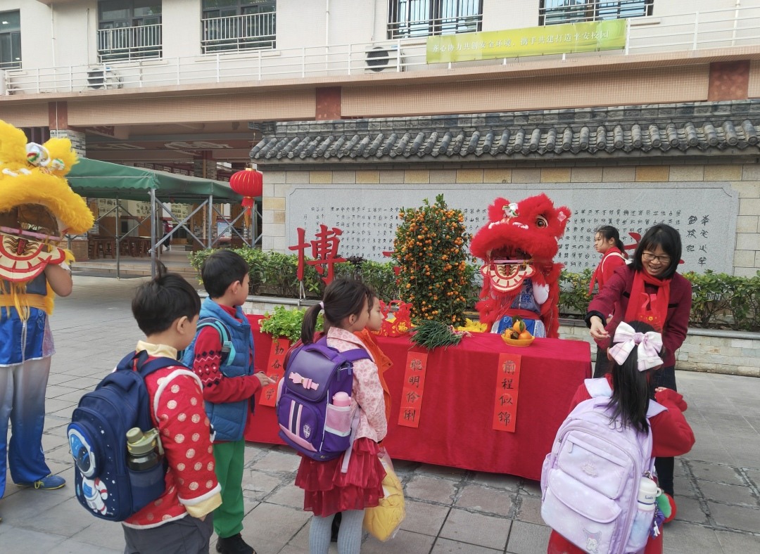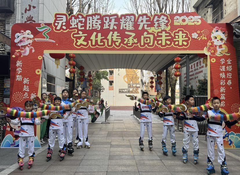 在市桥先锋小学,同学们踏入校门便收到学校精心准备的特制开学祝福红包。红包里有承载“步步争先”校训的精美卡片,激励学子勇攀高峰;有寓意吉祥的蛇年祝福书签,寄托美好祝愿;还有趣味盎然的蛇年灯谜卡,增添开学乐趣,激发大家的智慧与好奇心。学校轮滑队员手持寓意吉祥的灵蛇,将新年祝福与好运传递给每一位学子。