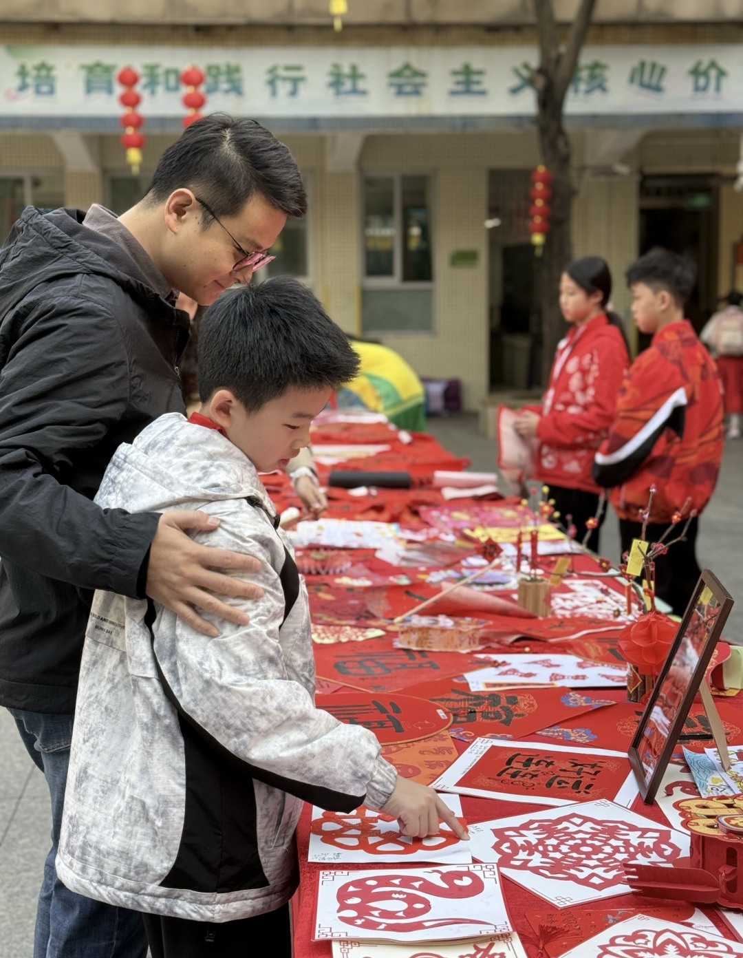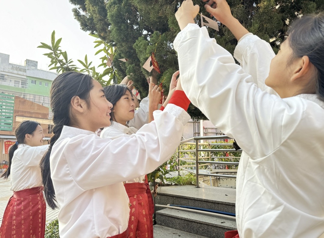 广东番禺中学教育集团培兰小学开展了一场别开生面的《送你一朵小红花》主题活动,以“红花传情启新程,巧手团圆向未来”为主线,通过“红花送祝福”“美德润心田”“巧手包团圆”三大篇章,开启新学期。校长和老师向学生发放小红花,鼓励他们在学习和品德方面积极表现。课堂上积极发言、校园里乐于助人的同学,都成为小红花的“宠儿”。全校师生还共同制作传统美食汤圆,互赠小红花,营造出温馨的校园氛围。东城幼儿园则以浓厚的“中国风”开启新学期。正月十六,年味犹浓,园里喜气洋洋。老师们早早到位,为每位入园孩子送上大红苹果,寓意“平平安安”。由老师和孩子组成的东幼龙狮队,与2025年少儿展演节目《“粤”说番禺》的小演员们,一同在门口迎接小朋友,传递着浓浓的年味。孩子们还亲自描绘心目中的“蛇”,一幅幅童趣可爱的画作共同构成一条“大蛇”,寓意新学期“画蛇添福”。