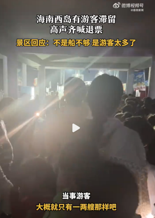 近日,网传三亚西岛管理失控、承载力不足,导致几千名游客滞留码头3小时,高声齐喊退票。游客称,工作人员告诉他们总共有15条船,但他站在最高处,一直看不到船过来,大概只有一两艘船。景区工作人员回应称:景区不是船不够,而是游客太多了。