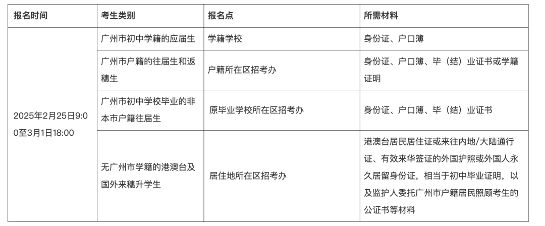 答:符合下列条件之一者,可报名参加广州市2025年中考: