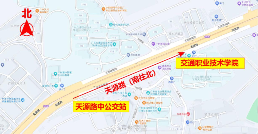 ●天河区天源路南往北方向(天源中路公交站至交通职业技术学院)
