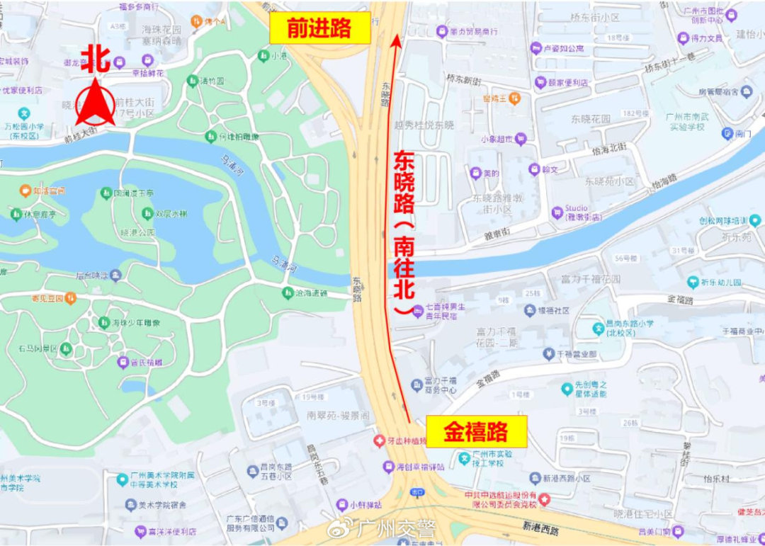 广州交警提醒广大交通参与者,届时请根据道路实际标志标线指示通行。