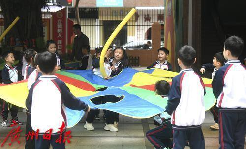 广州市天河区华阳小学根据市教育局发布新规,结合实际情况,调整了学生在校作息时间,切实保障学生每天2小时校园体育活动时长。记者在现场看到,课间时间从10分钟延长为15分钟后,同学们在老师的指导下,组织玩耍“打地鼠”“一二三木头人”等趣味游戏,还有同学跳绳、跑跳嬉耍,课间充满欢乐声。