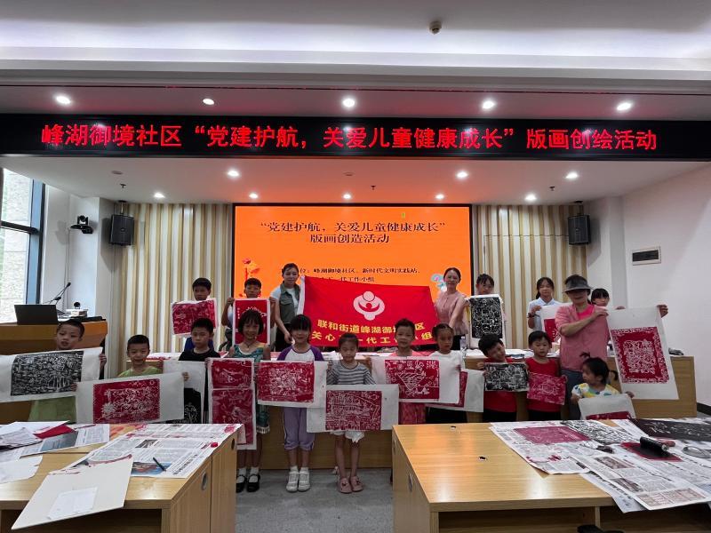 峰湖御境社区“党建护航,关爱儿童健康成长”版画创绘活动。