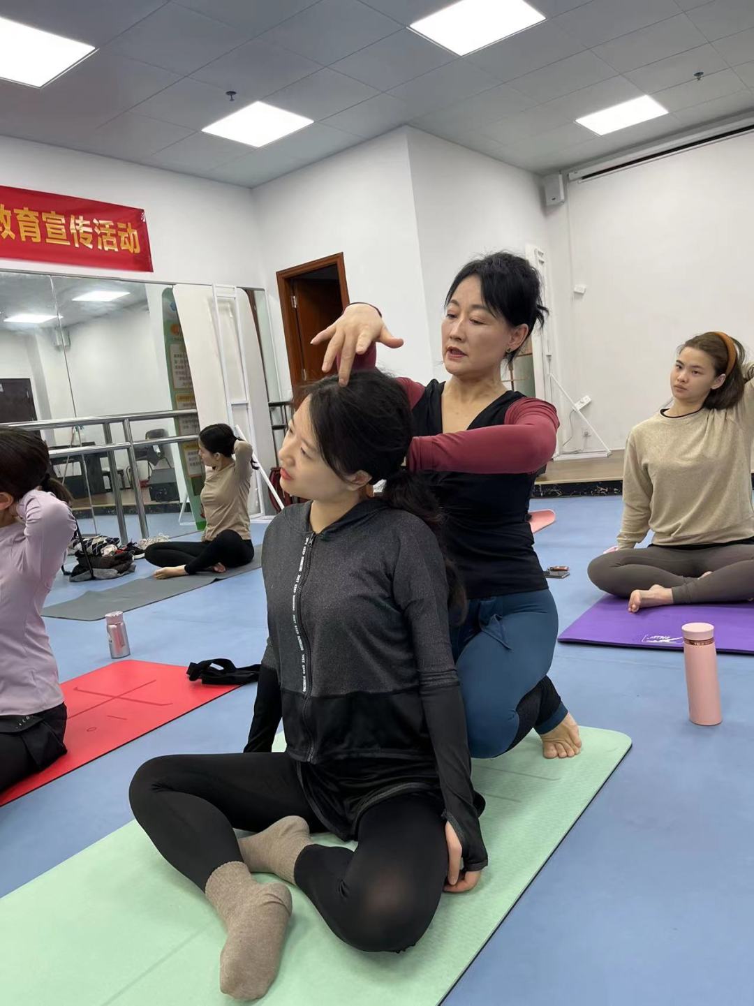 常敏担任瑜伽公益课讲师,指导居民练习瑜伽。