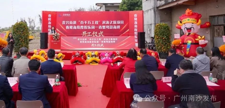 2月13日上午,龙穴街道“百千万工程”滨海文旅项目——春隆海岛度假乐园(青蟹鹭影海畔)(以下简称“滨海文旅项目”)开工仪式举行。区政协、区“百千万工程”指挥办、区商务局、区规自局、区文广旅体局、龙穴街道等单位领导,以及南沙农业集团、龙穴商会等相关代表出席仪式,共同见证这一重要时刻。