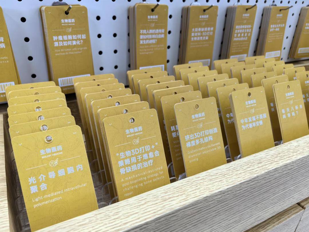 超市内,记者看到种类多样、设计新颖的“科学发现”“技术成果”卡片,领域涉及医学成像设备与科学仪器、合成生物与生物制造、集成电路材料与封装、人工智能与机器人等多个深圳先进院主攻方向。