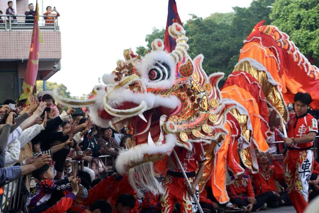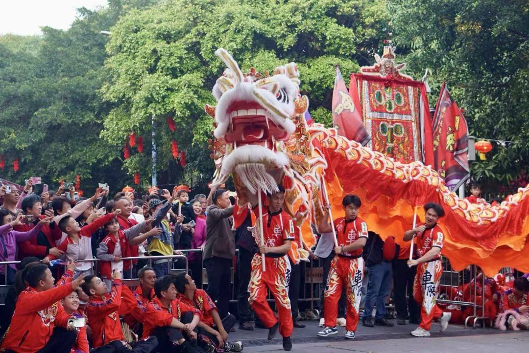 当日下午,长湴村内,锣鼓声、鞭炮声接连不断,舞龙、舞狮游村表演,热闹的活动吸引了众多村民围观。