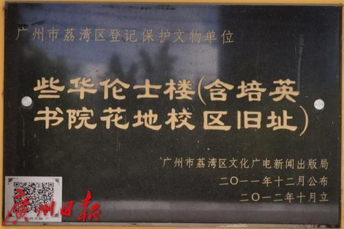 些华伦士楼落成于1914年,拥有112年历史,位于广州市荔湾区白鹅潭商务区核心区,总建筑面积2750平米,是现培英书院花地校区旧址建筑之一,被评定为广州市荔湾区登记保护文物单位。作为荔湾区标志性景观之一,建筑屋顶采用岭南传统的四坡歇山形式,是典型的近代折衷式建筑,同时见证了广州地区由传统教育模式向近现代公共教学模式的转型,具有较高的历史和艺术价值。