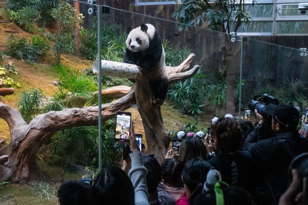 2024年12月8日,游客在香港海洋公园香港赛马会四川珍宝馆参观新一代“安安”。