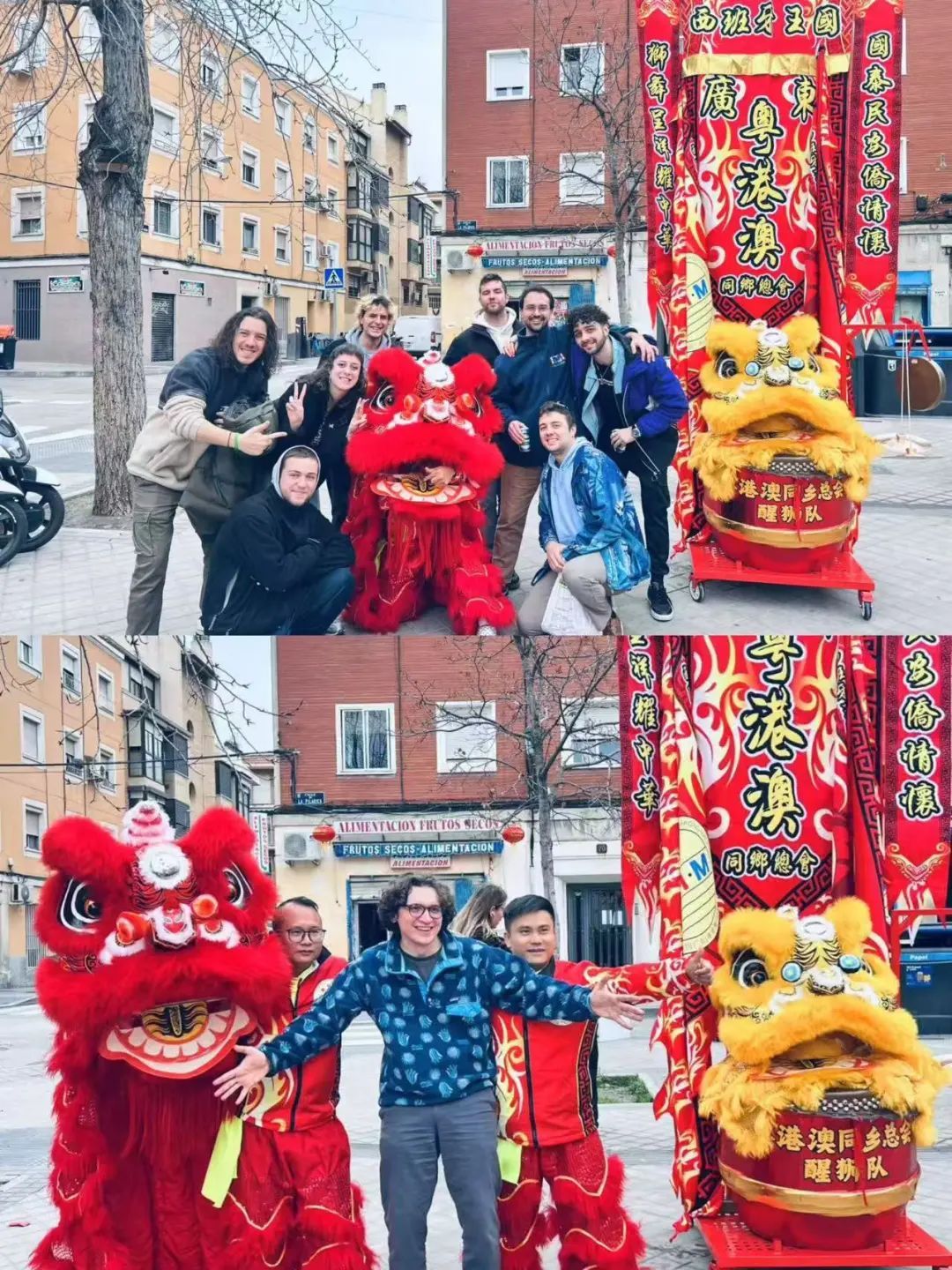 2024年底,麦晓峰在朋友引荐下,与西班牙王国广东(粤港澳)同乡总会结缘,并与其他3名麒麟舞传承人一同受邀,代表该会在2025年西班牙马德里USERA新春庙会上进行醒狮表演,这一表演不仅让当地市民领略了中华传统艺术的精髓,更激发了他们对中华文化的浓厚兴趣。