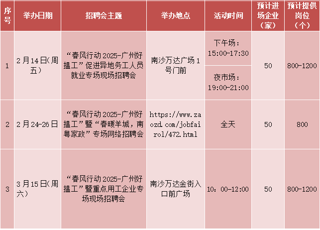 作为开年大戏,南沙街道“春风行动2025”系列招聘会将持续至3月底,线上线下同频共振,为企业和各类求职者提供便捷高效的对接服务。错过首场招聘会的朋友们也不用遗憾,接下来还有两场大型招聘会,具体安排如下,有需要的街坊朋友可多多留意。