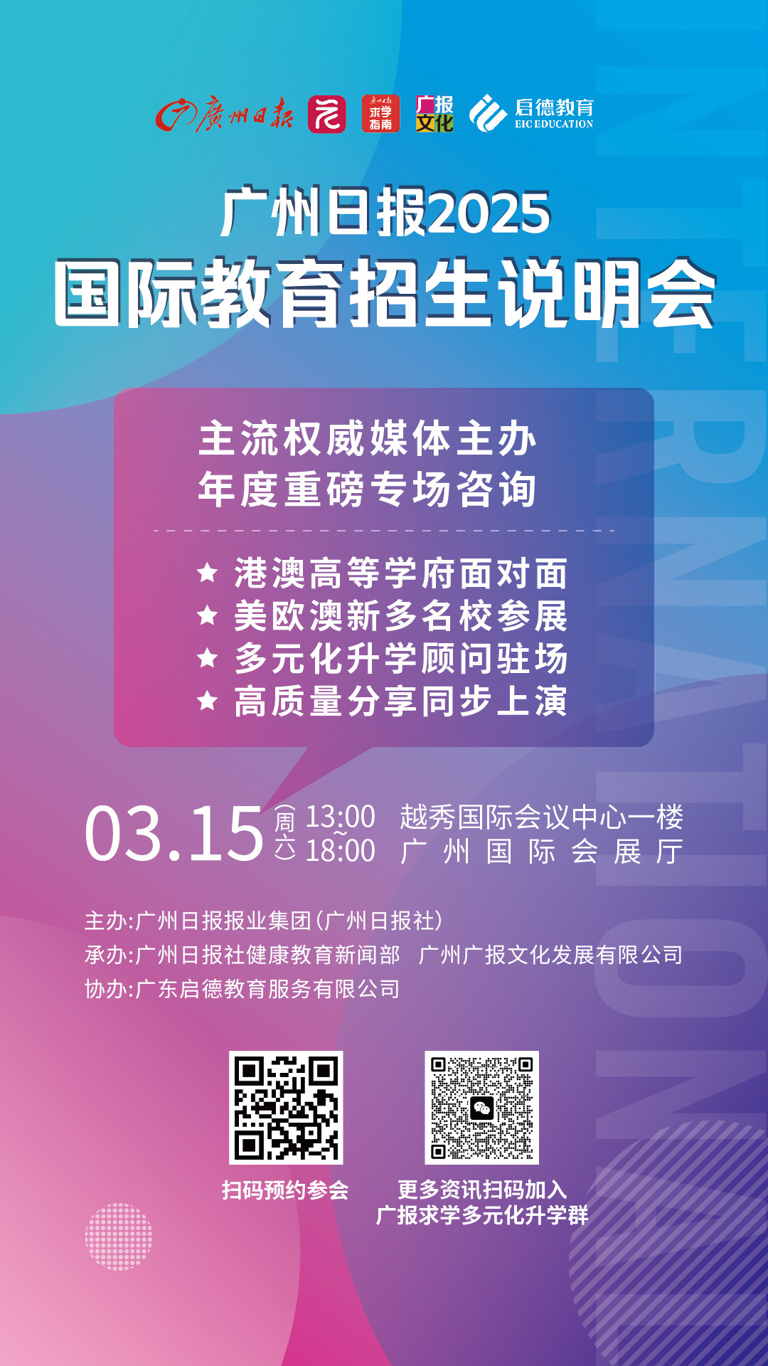 广州日报携手启德教育举办的2025国际教育招生说明会将于3月15日在越秀国际会议中心进行。记者观察到,对于2025年的海外院校早申,形势已经悄然发生变化。考生需要怎样准备才能提高成功率?本文将进行专门分析以供参考。