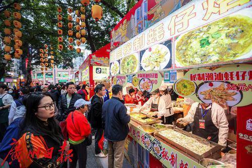 2025广府庙会“美食庙会”近日在越秀区惠福美食花街正式上线!美食区现场人潮涌动,香气四溢,排队的长龙从街头蜿蜒到街尾。市民游客们捧着热气腾腾的小吃,穿梭在漫画装点的美食街巷中,切身感受广府文化与古城街巷烟火气的相融交织。