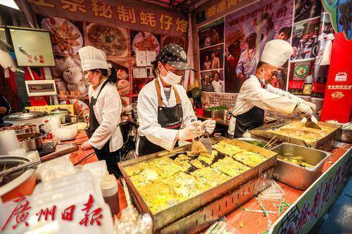 越秀区打造的惠福美食花街毗邻北京路步行街,集聚了特色小吃、岭南特色家常小菜以及东南亚风味等各类型饮食店铺,集聚广府特色美食约75家,是外地游客和本地市民体验“食在广州”的必到之处。此次深受民众喜爱的传统美食汇聚美食庙会,包括国际五星级酒店广州富力君悦大酒店特色美食芝士焗蟹盖、法式蒸生蚝,顺德名酒楼大板桥均安蒸猪,还有伦教糕、陈村粉、盲公丸、拆鱼羹等系列广府特色小吃及大江南北特色美食。