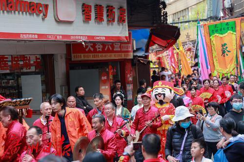 巡游过程中,“财神爷”向路旁群众派发糖果,传递美好的祝福和节日的喜悦。