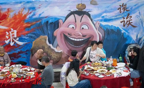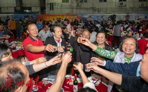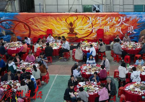 “来来来,上菜啦!” 2月14日(农历正月十七),广州市白云区龙归街南岭村迎来2025年贺年宵暨醒狮文化节。当晚,南岭村在南岭党群文化公园、爱莲公园共筵开850席,年年有余(清蒸多宝鱼)、红红火火(家乡芋头扣肉)、子孙延绵(脆皮烧鹅)……每一道菜式都有美好的寓意。全村男女老少、周氏乡亲、企业代表及海内外侨胞齐聚一堂,共享团圆。