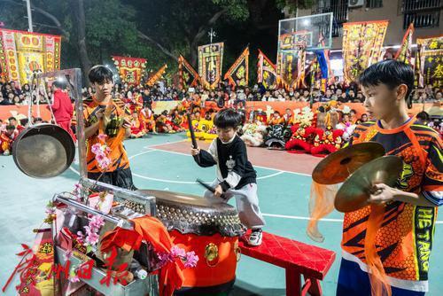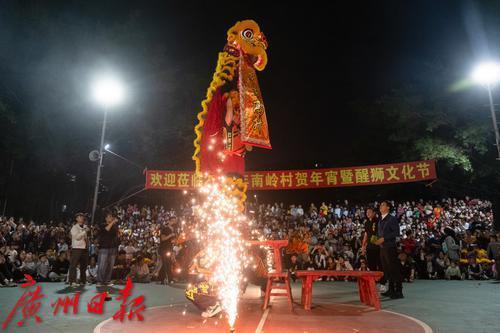 吃饱喝足,醒狮文化节热闹上演,为年宵活动再掀高潮。来自粤港澳大湾区包括广州周边地区友好村以及佛山、中山,肇庆、广西、中国香港等地25支狮队共60余头醒狮,带来《步步高》《人月两团圆》《金蛇献瑞》等精彩节目,为全村居民群众送上吉祥祝福。