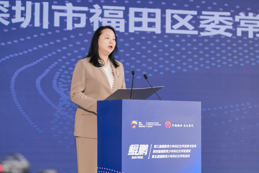 王巍在致辞中指出,四年来,在深圳市委宣传部和福田区委区政府的支持下,福田率先构建以鲲鹏少年院为核心的拔尖创新人才培养体系。目前,“鲲鹏奖”已培育出众多优秀青少年科幻作者和文学作品,向世界展现了中国青少年的科幻想象力。如今,“鲲鹏奖”不仅是文学奖项,更是福田教育融合人文与科学的生动实践,为青少年插上梦想的翅膀。她期待涌现出更多奇思妙想的作品,点燃青少年的科学热情,锤炼创新思维,让“鲲鹏奖”成为中国科学人文教育走向世界的一张闪亮名片。
