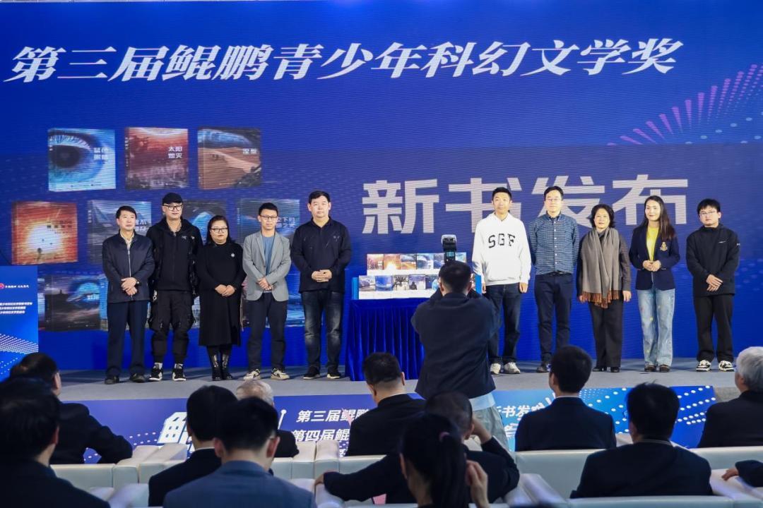 在新书发布环节,郑军、三丰、马传思、谢梅、王卫英、陈柳岐、超侠、马国宾、舒伟、岑叶明上台为新书揭幕,第三届“鲲鹏奖”获奖书系正式亮相,包含4部长篇作品和3部短篇作品合集,分别是《涅槃》《陨星》《触不可及》《蓝色眼睛》《一二三四五号前来报到》《太阳熄灭》以及《夜空下的文明之火》。