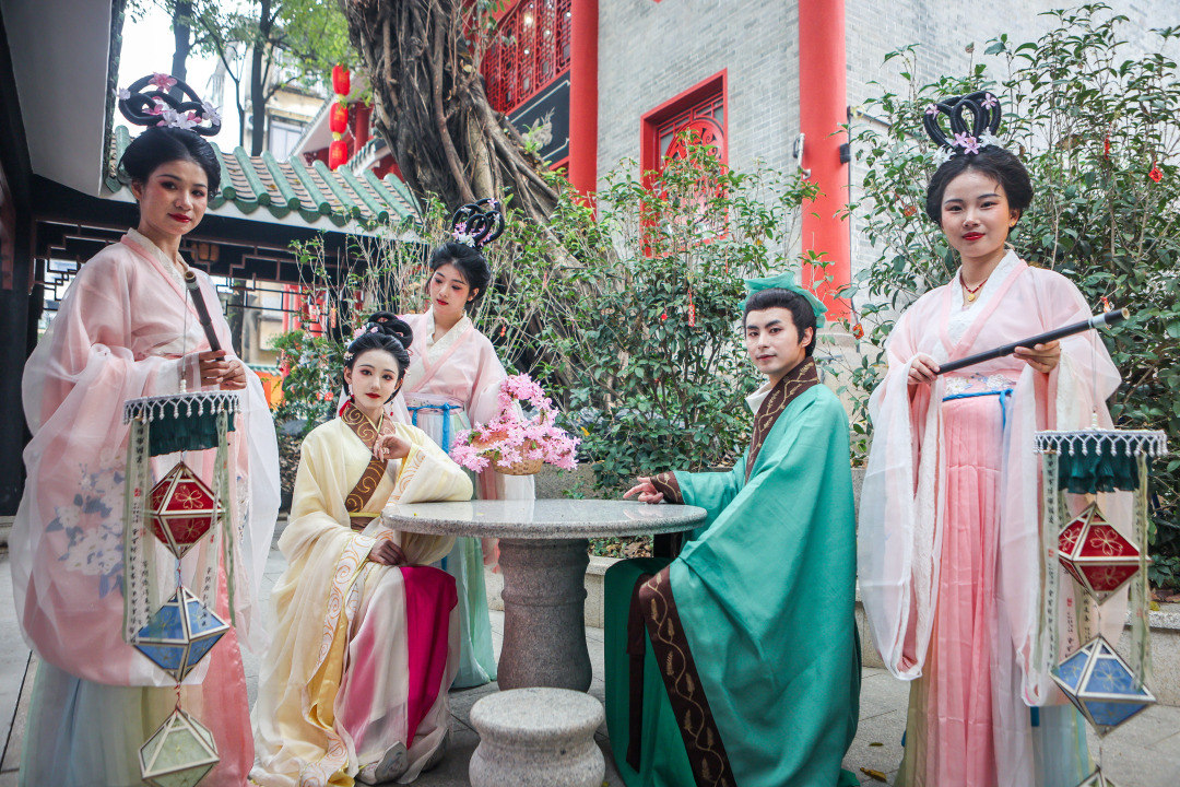 2月15日、16日,连续举办“上元访古观”国风游园会,汉服试穿、DIY羊羊纸模、飞花令、传统剪纸等活动环节,让市民游客在免费体验传统服饰之美、诗词之美的同时,加深对以五仙五羊传说为代表的广府文化的认识。市民游客穿梭于五仙观文化艺术空间,在参与汉服体验、纸模制作、诗词对答的过程中,真切感受到传统文化带来的乐趣。