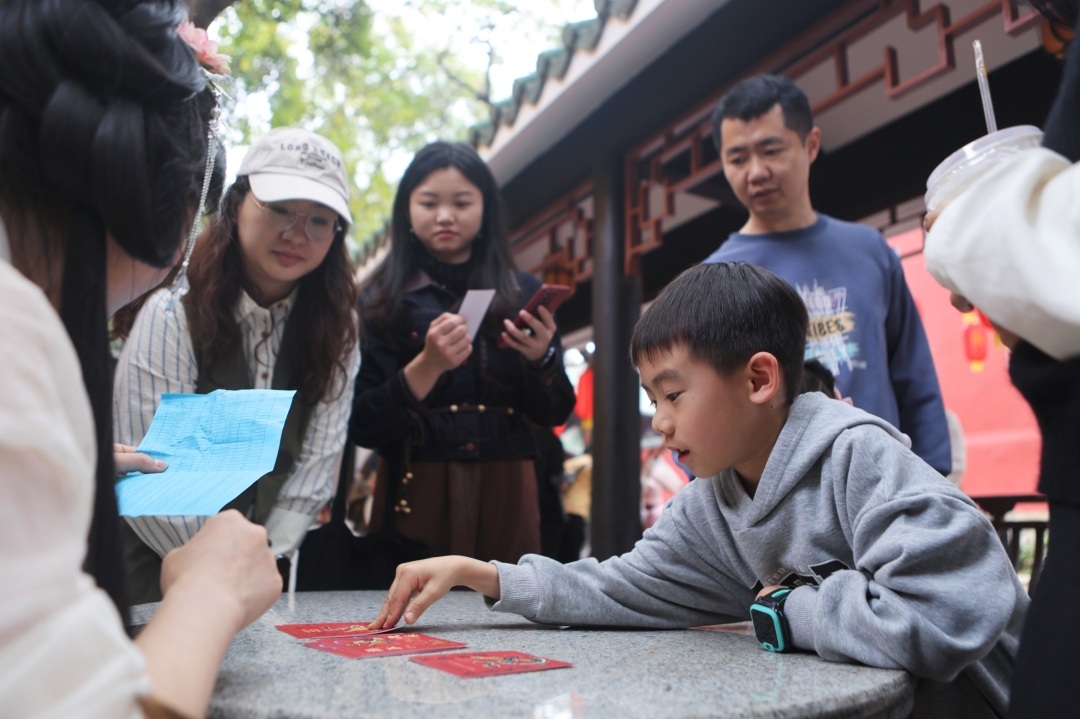 为让市民游客更加沉浸地感受传统文化的魅力,广府庙会期间,五仙观文化艺术空间内举办了一系列传统古风主题的互动游戏,兼顾文化惠民活动的深度、温度与热度。