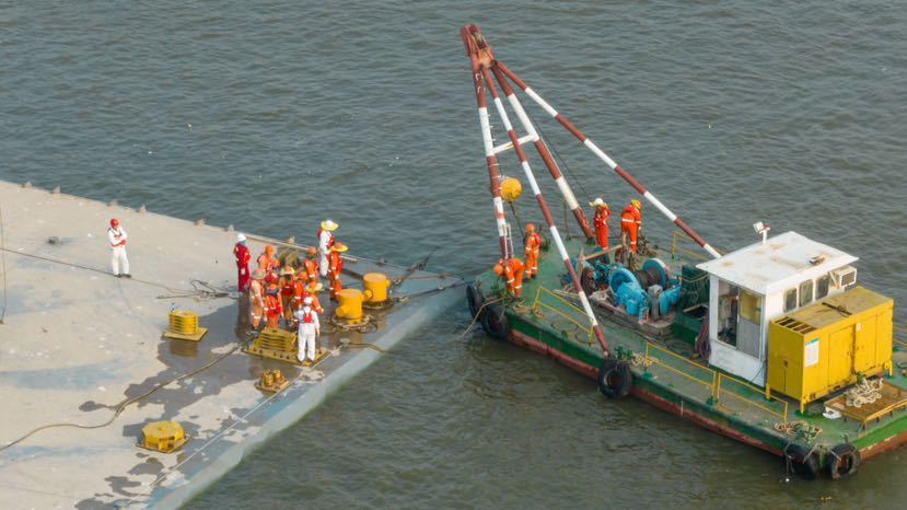 记者了解到,管节浮运安装是一项复杂的系统工程,需要多艘施工作业船舶同时配合作业,对各船舶作业的统筹调度要求极高,协同作业难度巨大。此外,出坞所用缆绳直径粗,人工换缆步骤繁琐,指挥与操作面临较大挑战,加之施工现场水流情况复杂,管节尺寸及重量大,整体受力状况复杂,管节姿态和移动轨迹的控制难度极大。面对上述难题,项目管理中心组织各方参建单位多次开展风险条件验收,对管节浮运的前置工序进行细致排查,确保每项工作严格按要求完成。