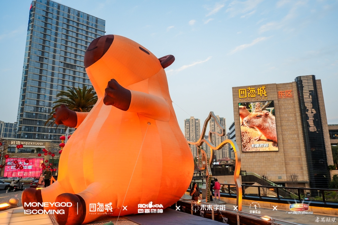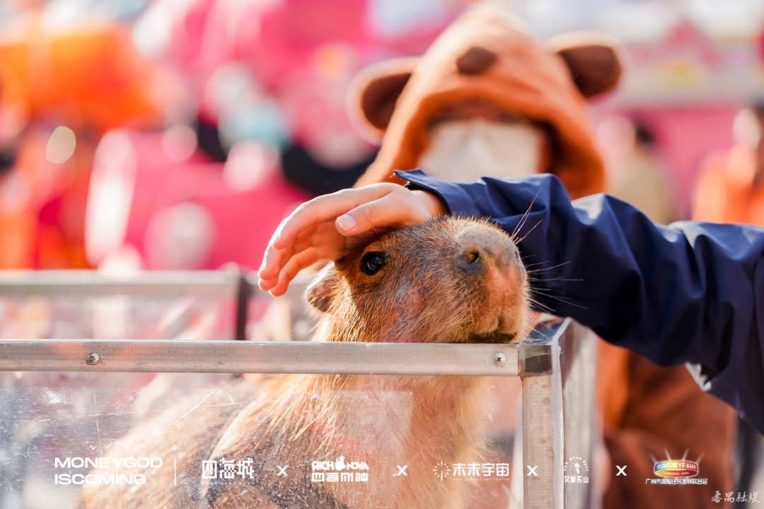 元宵佳节作为阖家欢乐、团圆美满的时刻,四海城还准备了众多可爱“萌物”,为小朋友和大朋友们送去欢笑。被网友昵称为“卡皮巴拉”的水豚成为现场主角,巨型“卡皮巴拉”装置和活生生的水豚俘获了一众市民的芳心;多家餐饮店也推出了“卡皮巴拉”限时产品。每天下午,憨态可掬的“卡皮巴拉”人偶还会在现场巡游;每天8点,欢乐长隆班底还将加入巡游队伍,俏皮可爱的卡卡和琦琦、技艺精湛的歌舞演员穿行于人群之中,引得游人纷纷记录下精彩瞬间。