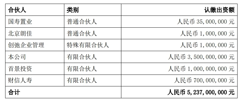 2月17日,中国人寿发布公告,该公司与北京首景投资有限公司及财信吉祥人寿保险股份有限公司(均作为有限合伙人),拟与国寿置业投资管理有限公司及北京朗佳私募基金管理有限公司(均作为普通合伙人)及创弛企业管理合伙企业(有限合伙)(作为特殊有限合伙人)订立合伙协议,以成立北京平准基础设施不动产投资基金合伙企业(有限合伙)(下称“合伙企业”)。合伙企业全体合伙人认缴出资总额为52.37亿元,其中,中国人寿认缴出资额为35亿元。国寿资本投资有限公司将作为合伙企业的管理人。