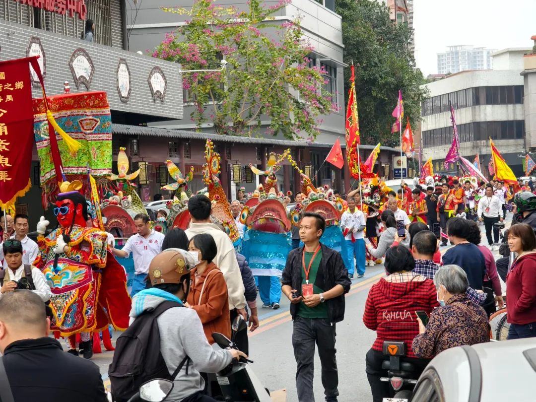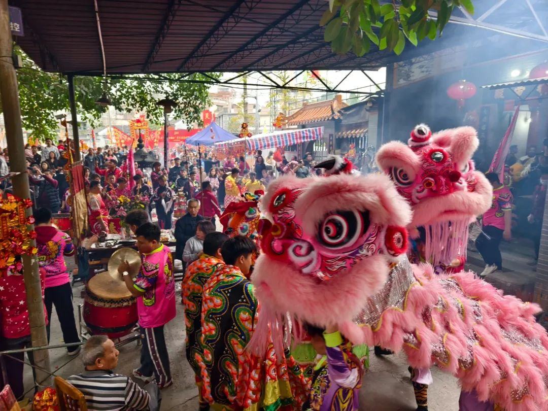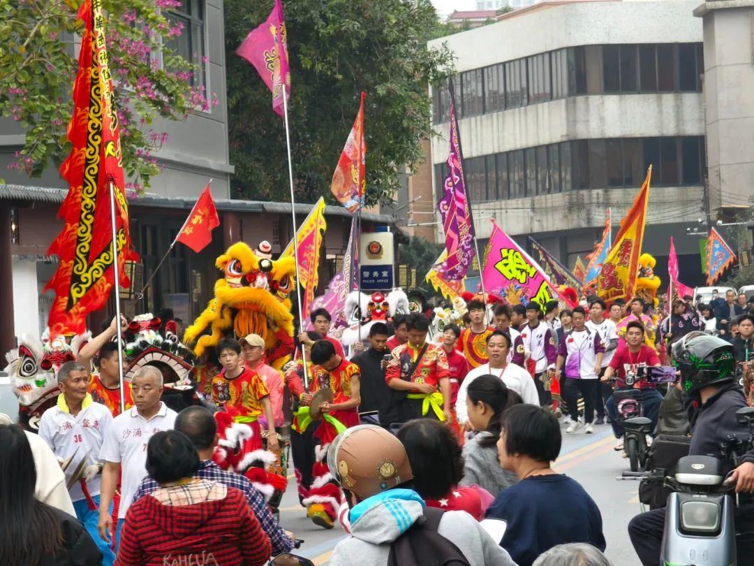 当天下午2时许,巡游活动正式开始。巡游队伍十分壮观,舞狮队和仪仗队精神抖擞,在激昂的锣鼓声中,或腾跃、或翻滚,尽显岭南狮艺的独特风采。“三太子”造型和财神造型同往年一样,深受村民的喜爱。今年的巡游队伍,增加了多个憨态可掬的小狮子。一个个小狮子灵动俏皮,软萌可爱,成为巡游队里亮眼的风景。