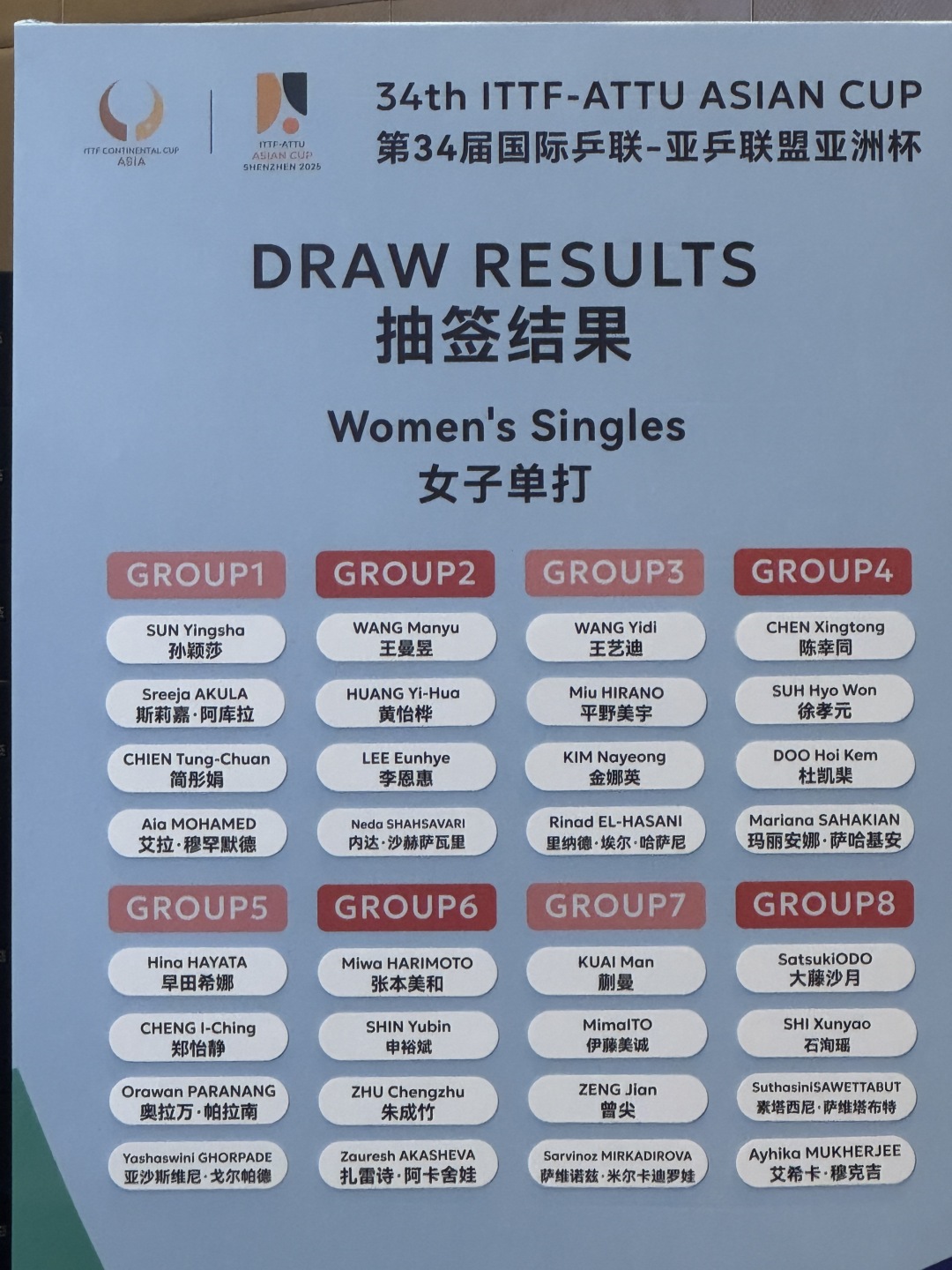 2025乒乓球亚洲杯丨女单第一阶段分组