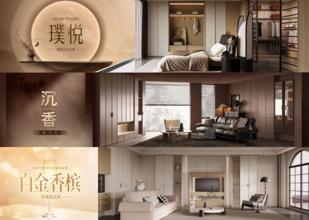 除了备受年轻人青睐的中古风(如沉香系列、璞悦系列)和轻法风(如香榭假日系列),以及深耕亲民价位的超值PET系列外,2025年尚品宅配还将推出一门到顶、门墙柜都能凹造型的白金香槟系列,以及质感全面升级的云漫时空系列,进一步满足消费者对高品质家居生活的多元化需求。
