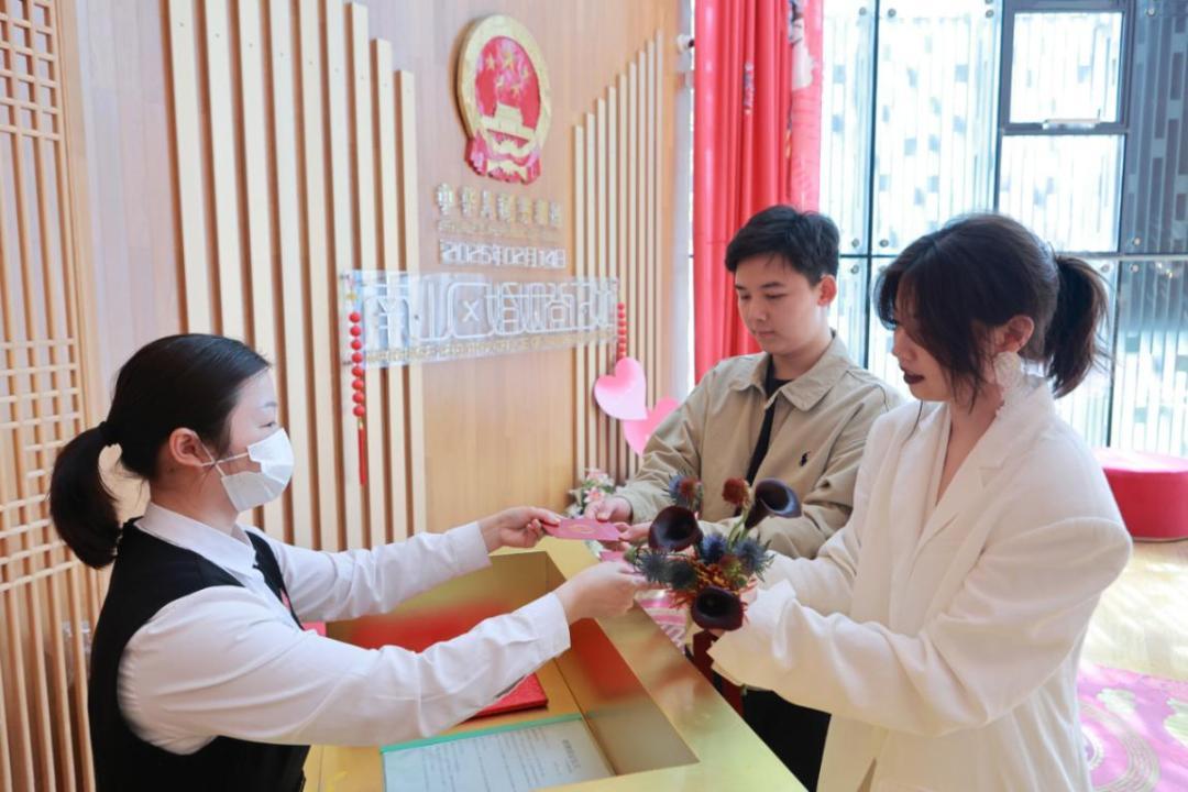 这是深圳创新婚姻登记服务的做法之一。深圳各区近年来“百花齐放”,持续以爱为名,打造浪漫之城,让庄严的行政程序升华为动人的仪式。为了让新人们的一纸婚书更有仪式感,各区婚姻登记处纷纷行动,推出一系列便民服务与特色活动,为爱护航,同时助力深圳甜蜜经济发展。
