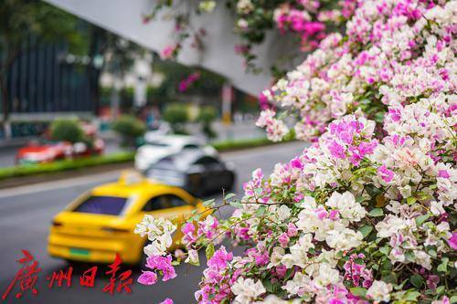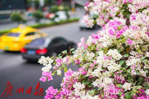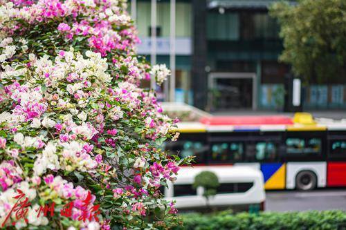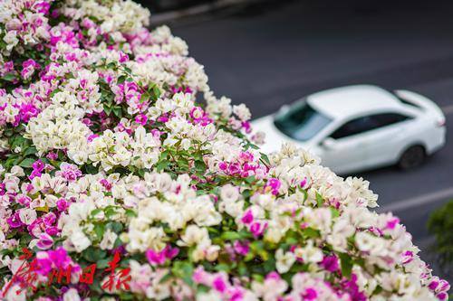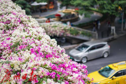 灿烂盛开的簕杜鹃,装点了车水马龙的东风路。