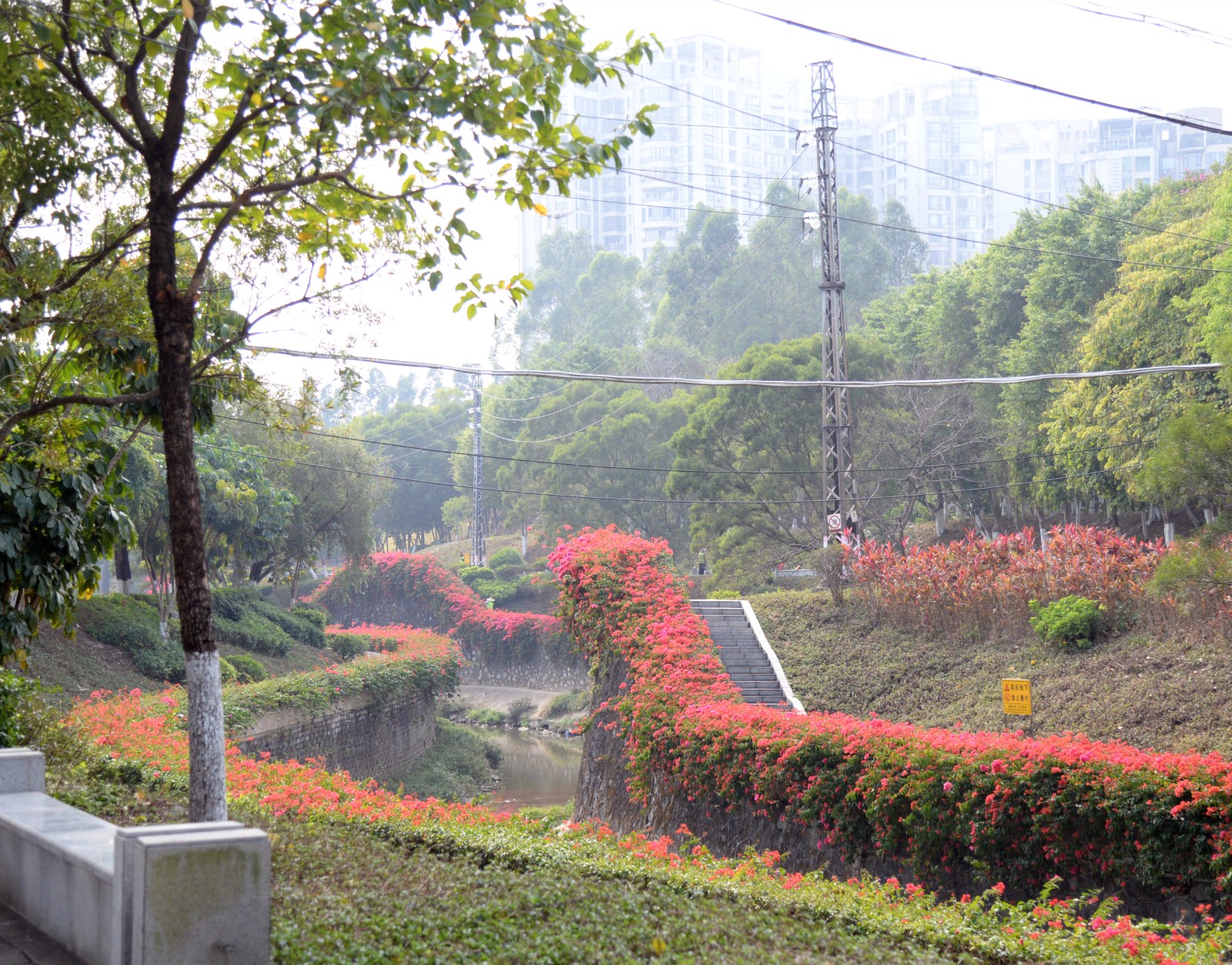 初春的车陂涌,流水潺潺、杜鹃花红。活动现场,记者看到“天河区域河涌水质观察站”就设立在车陂涌河岸边上,位于车陂涌中上游段,上承树木资源丰富的广东树木公园,下接有着“南方绿宝石”之称的华南植物园。