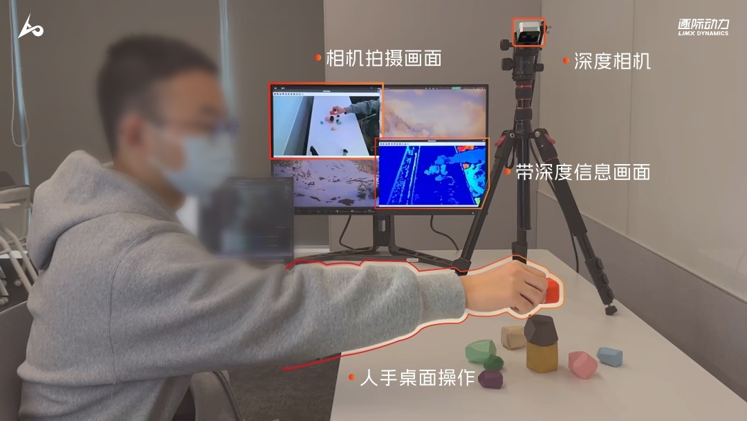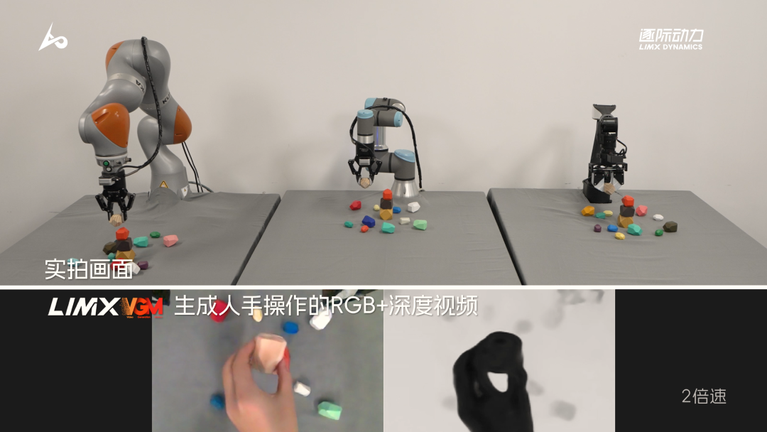 LimX VGM通过深度相机捕捉人手操作,生成的操作视频直接包含三维空间数据。