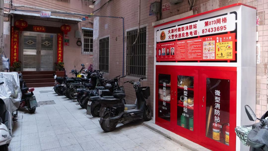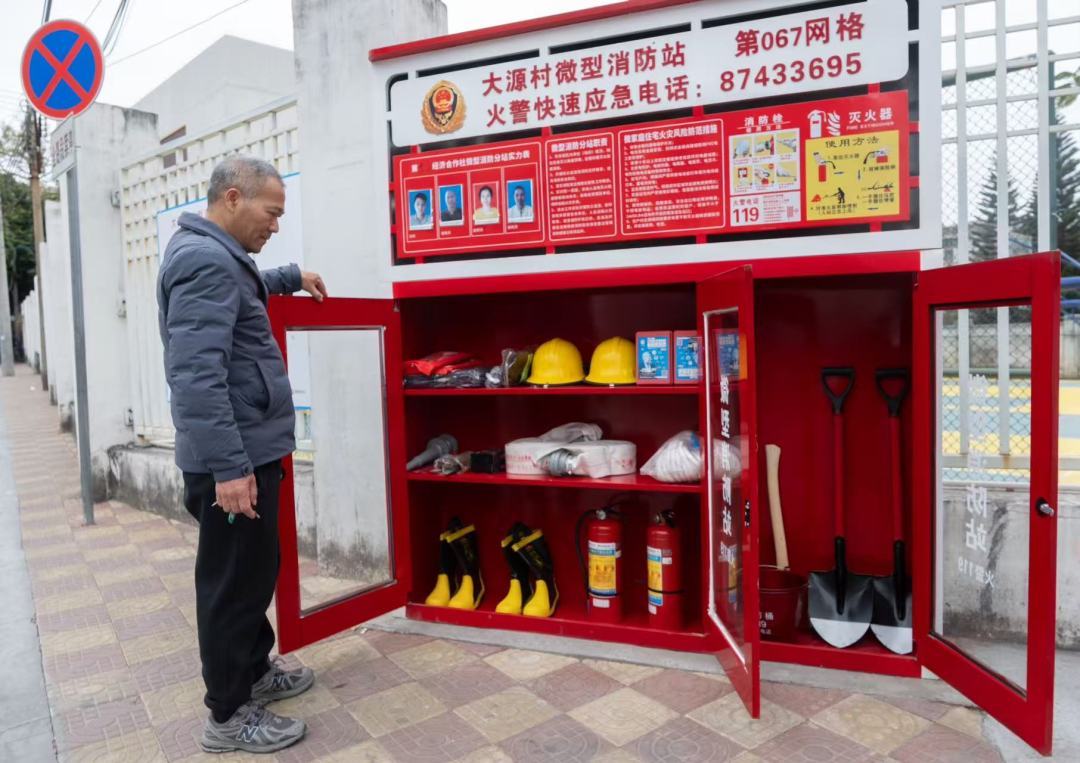 王智辉介绍,通过“1+3”镇街结对互促机制,大源村从石门街道等4个结对联社筹集资金10万元,加上大源村及各经济社自筹资金,共投入40多万元,在全村100个网格的重点路段、楼栋密集区、显眼位置等关键节点,全覆盖建设100个微型消防站网格分站,为居民群众打造家门口的安全“防火墙”。