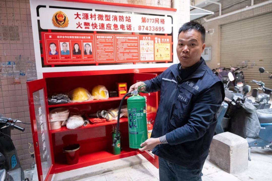 “微型消防站网格分站的建立,以‘小、快、灵’破解‘远水救不了近火’的难题。”王智辉举例道,2024年5月的一天,大源村南坑四社一栋出租屋外的电动车发生自燃,当时屋主不在家,浓烟触发了楼道里的智慧烟感,警务室后台及时通知微型消防站值班人员、最小应急单元人员,他们不到3分钟就赶到火情现场扑救,在专业消防人员赶到之前完成火情处置。“从2024年6月微型消防站完成建设截至目前,我们已成功预防处置初期火灾48起,确保发生火情时‘救早灭小’”,王智辉说道。