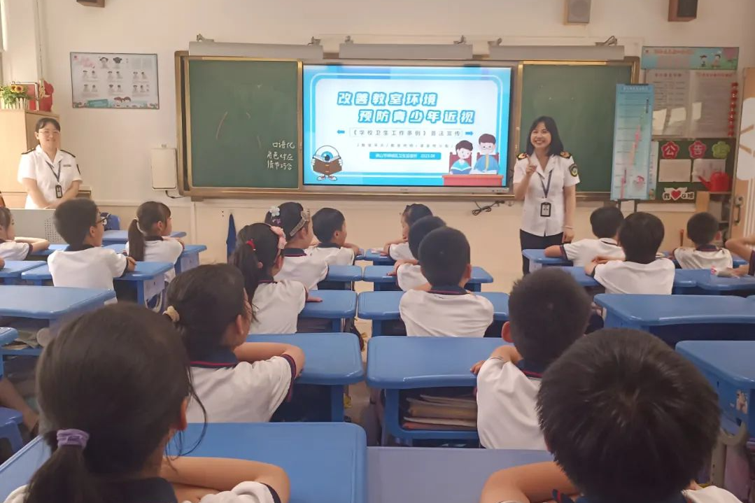 禅城区紧盯“小眼镜”问题,在全区教育系统开展“护眼亮睛”专项行动,以学生健康为中心,以“4个100%,1个2%”(中小学校教室灯光改造率100%、学生视力健康筛查和动态监测建档率100%、校园视觉健康专兼职宣传队伍配备率和培训率100%、学生科学用眼护眼知识知晓率100%,全区学生近视率下降2%以上)为目标,打造“森林阳光教室”,构建优质高效的校园卫生健康服务体系,全力推动儿童青少年近视防控工作。